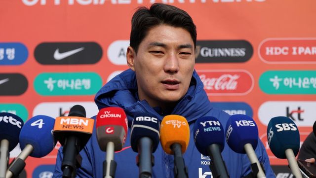 한국 남자축구 대표팀 주민규가 지난 3월 17일 고양종합경기장에서 열린 3월 A매치 대비 첫 훈련에 앞서 인터뷰를 하고 있다. / 연합뉴스