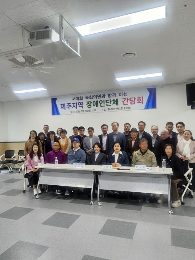 서위원장은 이날 제주시 이도일동 제주혼디누림터 회의실에서 개최된 제주지역 간담회에서 "6.3 대선 승리로 오랜 숙원인 '대통령직속 국가장애인위원회'를 설치해 장애인 정책에 대한 국가책임을 강화해나가도록 하겠다"고 강조했다.