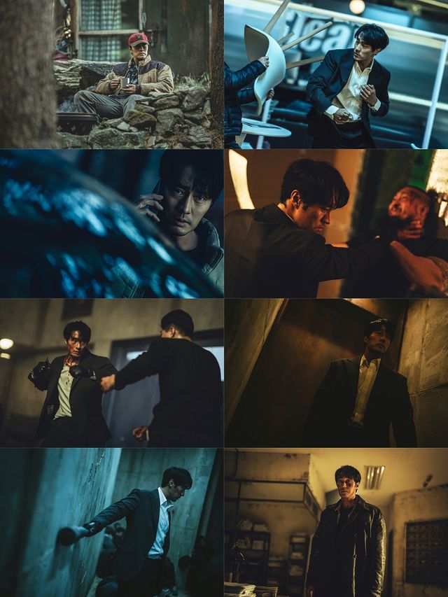 먼저, 모자를 눌러쓴 채 홀로 캠핑장에 앉아 있는 '기준'과, 누군가와 치열하게 싸우고 있는 '기준'의 완전히 상반되는 두 모습은, 조직을 떠나 평범한 삶을 살고 있던 '기준'이 '광장' 세계로 다시 돌아온 이유와, '기준'의 과거에 숨겨진 이야기를 궁금하게 한다. 이어지는 스틸들은, 무자비하게 상대방의 목을 조르고 있거나, 피투성이가 된 얼굴로도 굴하지 않고 상대방과 맞서 싸우고 있는 모습, 쓰러진 적들을 뒤로한 채 그의 시그니처 무기인 야구배트를 들고 있는 '기준'을 통해 냉혹하고도 고독한 그의 복수의 여정을 보여준다. 그가 이토록 처절하게 복수를 하려고 하는 대상은 누구일지, 그 과정에는 어떤 고난이 기다리고 있을지, '기준'이 이끌 '광장'의 예측 불가한 이야기에 기대감이 모인다.