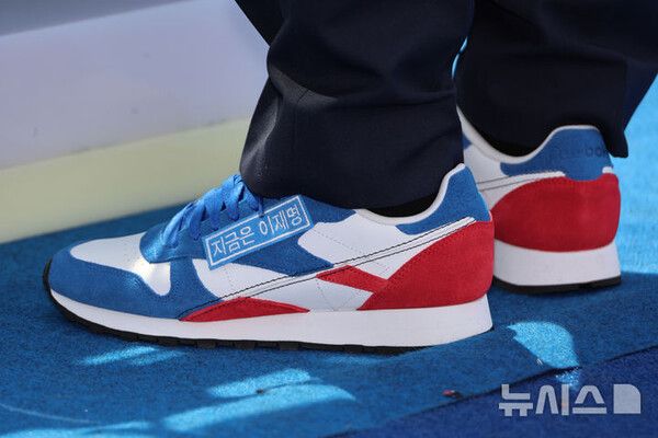 특히 이 운동화에는 '지금은 이재명' '이제부터 진짜 대한민국'이라는 두 문구가 붙어 있어 이목을 끌었다.