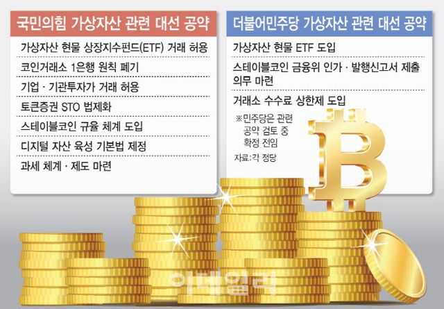 13일 금융권과 정치권에 따르면 국민의힘과 더불어민주당 모두 가상자산 업권과 투자자의 요구사항을 반영한 공약을 준비 중이다.