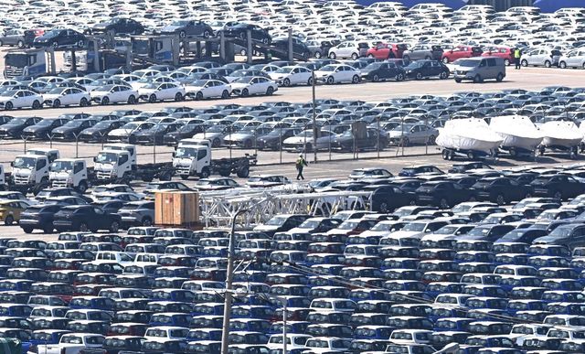 29일 경기 평택항 자동차 전용부두에 선적을 기다리는 수출용 차량이 세워져 있다. 2025.04.29. [평택=뉴시스]