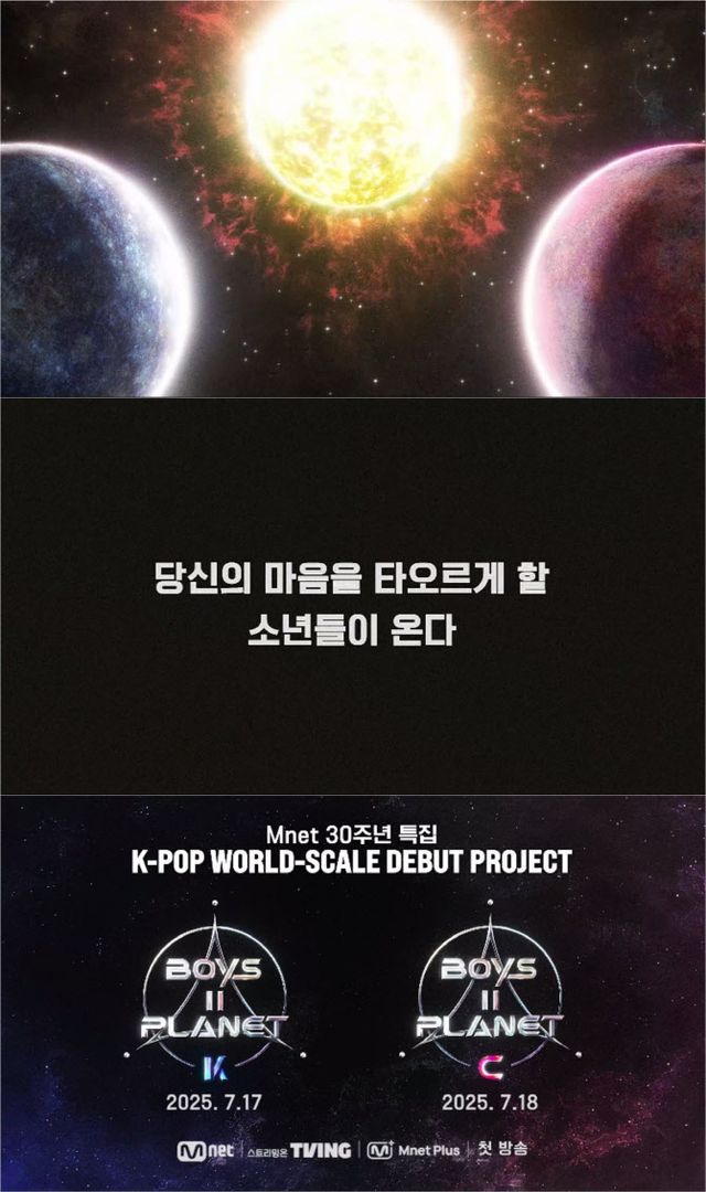 ‘보이즈 2 플래닛’은 글로벌 팬덤이 데뷔시키고 최정상에 올리는 월드 스케일 프로젝트. K와 C 두 개의 플래닛에서 치열한 테스트를 거쳐 최종적으로 ‘보이즈 2 플래닛’에 모인 소년들은 K팝 최정상 보이그룹이 되기 위한 여정을 써내려간다. ‘보이즈 2 플래닛 K’는 7월 17일, ‘보이즈 2 플래닛 C’는 7월 18일 첫 방송된다.