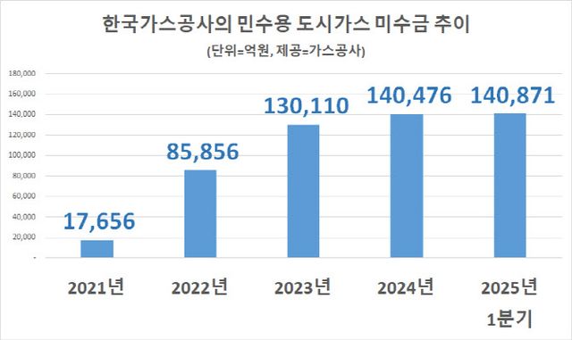 이 민수용 미수금은 2022년 글로벌 에너지 위기 여파로 눈덩이처럼 불어났다. 2021년 말 1조 7656억원이던 것이 3년 뒤인 지난해 말 14조 476억원으로 8배 가까이 늘었다.