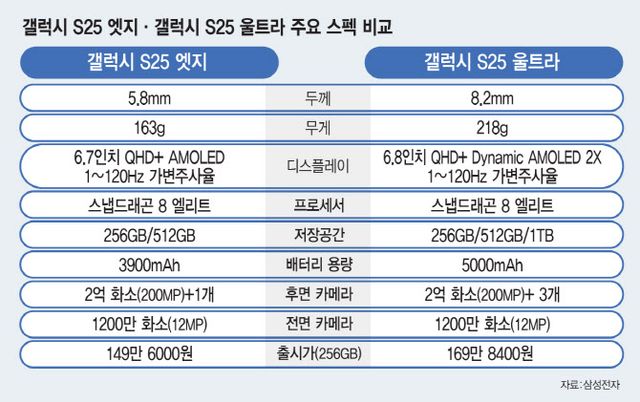 노태문 삼성전자 디바이스경험(DX) 부문장 직무대행 사장도 지난 1월 언팩 기자간담회에서 “갤럭시 울트라는 성능은 뛰어나지만 두껍고, 일반 모델은 얇지만 카메라가 아쉽다는 피드백이 있었다”며 “갤럭시 S25 엣지는 이러한 소비자 의견을 반영해 기획된 제품”이라고 강조했다.