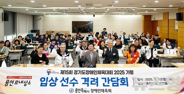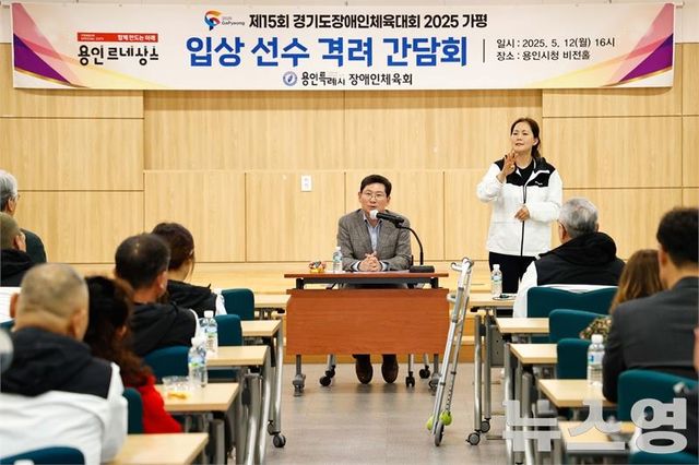 (뉴스영 이현정 기자) 이상일 용인특례시장은 12일 오후 시청 비전홀에서 ‘제15회 경기도장애인체육대회’ 입상자와 지도자들에게 메달을 전수하고, 성과를 축하했으며 장애인 선수단의 의견을 듣는 시간을 가졌다.