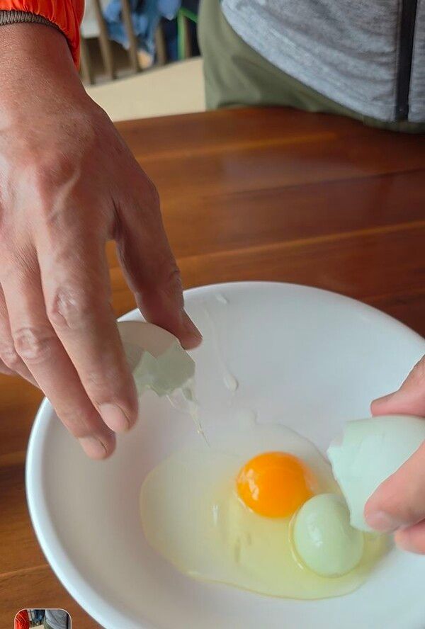 조씨는 "달걀이 유난히 커 쌍란(노른자가 2개 있는 달걀)으로 생각했는데 막상 깨보니 이중달걀이었다"며 "살면서 이런 광경을 처음 본다"고 말했다.