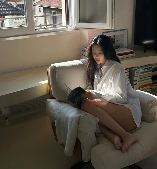 장재인은 13일 자신의 인스타그램을 통해 신보 발매 소식을 전하며 사진을 여러장 게재했다. 사진 속 그는 소파에 앉은 채 따사로운 햇살을 온몸으로 즐기는 모습이다. 셔츠 한 장만 걸친 듯 하의실종 룩을 완성, 쭉 뻗은 각선미와 170cm 늘씬한 키를 자랑했다.