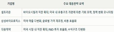 이런 가운데 셀트리온은 이번 행정명령이 바이오시밀러 제조사에게 유리하게 작용할 것이라며 세 가지 기회요인을 제시했다.