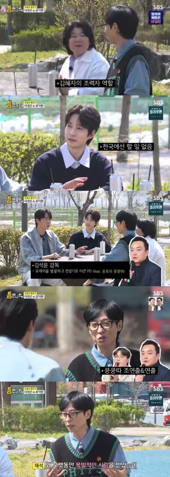 13일 방송된 SBS 예능 프로그램 '틈만나면'에서는 배우 이정은과 류덕환이 '틈 친구'로 출연해 '틈 주인'과 만나 이야기를 나눴다.