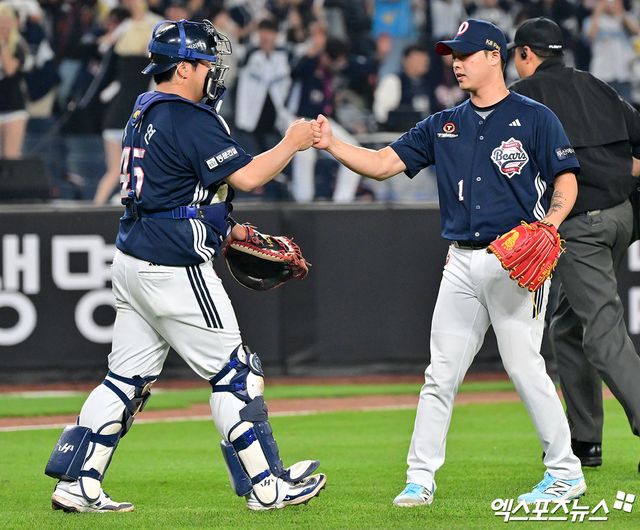 두산은 5회초 상대 실책을 틈타 반격했다. 오명진 좌익수 뜬공 후 강승호가 중전안타를 치고 나갔고, 포일로 2루까지 진루했다. 그리고 풀카운트에서 받아진 김인태의 타구가 내야안타가 됐고, 2루수 황영묵의 송구 실책으로 강승호가 3루를 지나 홈을 밟으면서 1-1 동점을 만들었다.