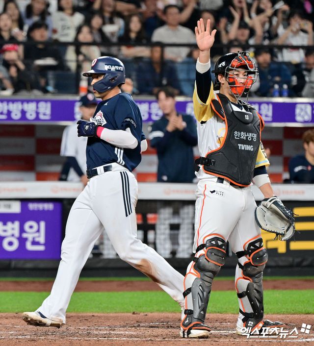경기가 끝날 타이밍에서 다시 최인호가 타석에 들어섰고, 김택연과 끈질긴 승부를 이어갔다. 파울, 파울, 파울, 그리고 9구 151km/h 직구를 받아친 최인호의 타구가 크게 떴다. 이 타구는 몬스터월을 넘었고, 승부는 원점으로 돌아갔다. 대전이 떠나갈 듯한 함성이 울려퍼졌다.