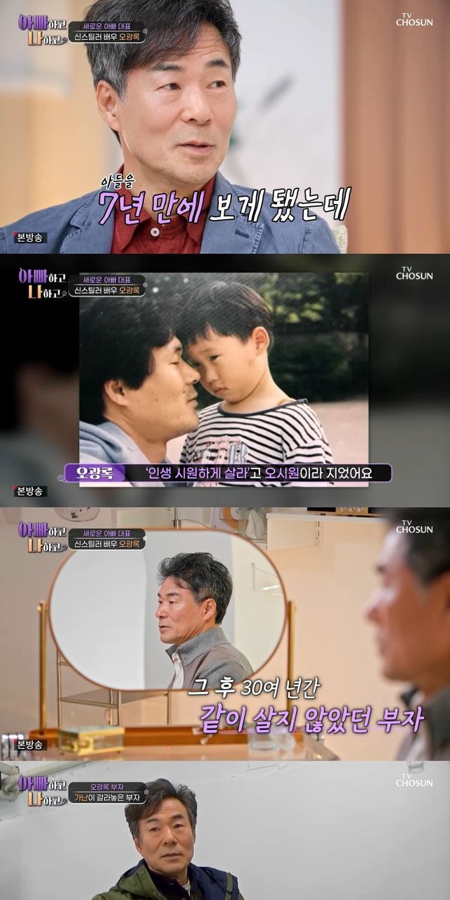이혼 당시에는 휴대 전화가 있던 시절이 아니라 아들과의 통화도 어려웠다고. 오광록은 "제 의지대로 할 수 있었던 게 아니다"면서도 "그런데 다 어떤 식의 표현이든 바보 같고 못난 소리 아니냐. 만남을 해결하지 못하고 사는 아빠가 어떻다고 (말할 자격이 없다)"라고 덧붙였다.