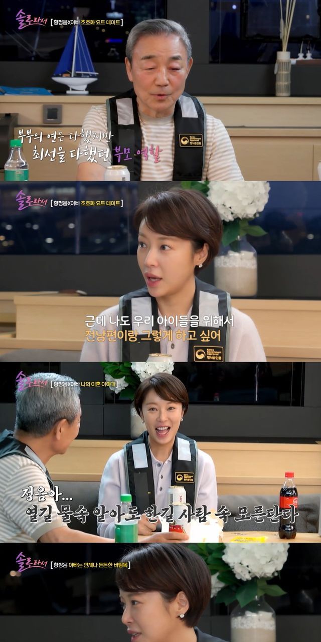이어 "나도 아이들을 위해 오빠(전 남편)랑 그러고 싶다. 그런 게 너무 좋은 것 같다"며 부부의 연은 다했지만 부모 역할에는 최선을 다한 부모님을 닮고 싶다고 밝혔고, 이후 본인의 이혼 이야기를 꺼냈다.