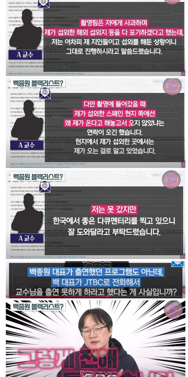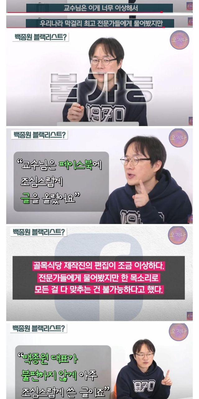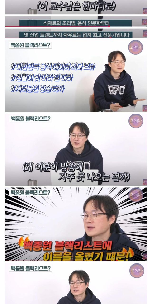 하다하다 서울대 교수도 방송에서 하차시킨 백종원