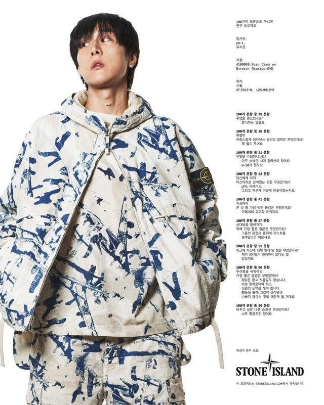 이날 공개된 사진 속 pH-1은 스톤 아일랜드의 제품을 착용하고 특유의 패셔너블하면서 자유분방한 무드를 내뿜고 있다. pH-1의 개성과 브랜드의 캐주얼하고도 유니크한 멋이 어우러져 시너지를 이뤘다.