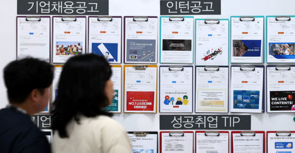 15~29세 고용률은 45.3%로 지난해 같은 기간보다 0.9%p 떨어졌다. 4월 기준으로는 2021년(43.5%) 이후 최저치다.