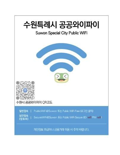 수원시는 시민이 더 쉽게 서비스를 이용할 수 있도록 큐알(QR)코드가 포함된 안내 홍보물을 공공 와이파이망 이용 장소에 부착하고, 노후 와이파이 장비도 순차적으로 교체할 계획이다.