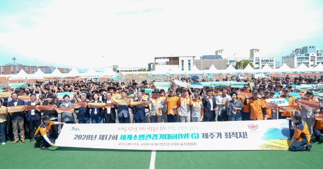 제주소방안전본부(본부장 주영국)와 의용소방대 연합회(남성회장 최운철·여성회장 이미경)는 14일 제주시 한림종합운동장에서 소방공무원과 의용소방대 1,500여 명이 참석한 가운데 ‘2025년 전도 의용소방대 소방기술경연대회’를 개최했다.