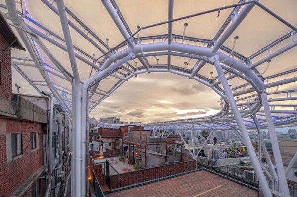 대상을 받은 'CLOUD'는 해방촌 신흥 시장 하늘을 가렸던 석면 슬레이트를 걷어내고 새로운 지붕(아케이드)을 설치한 공공 건축물이다.