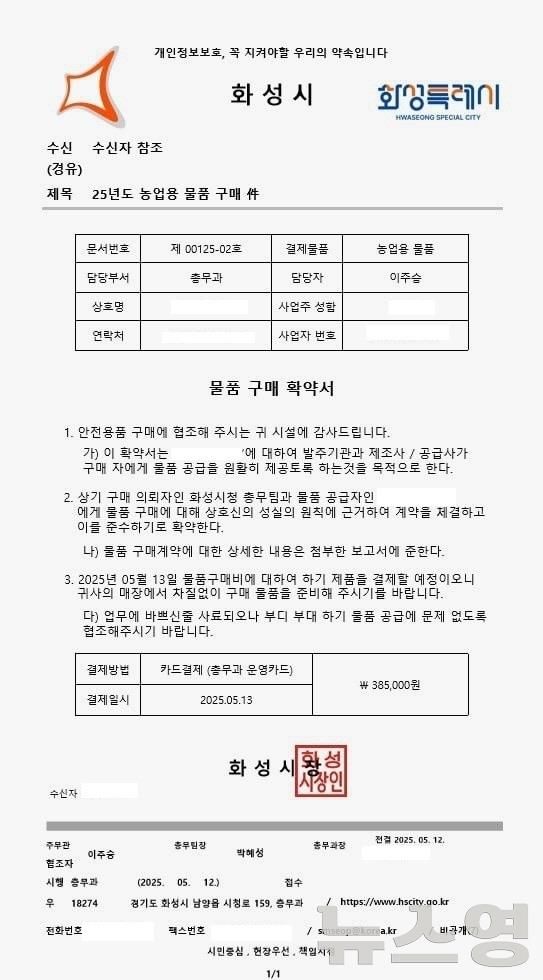 (뉴스영 이현정 기자) 화성특례시가 최근 공무원을 사칭하거나 공문서를 위조하는 사례가 발생하고 있다며 시민들의 각별한 주의를 당부했다.