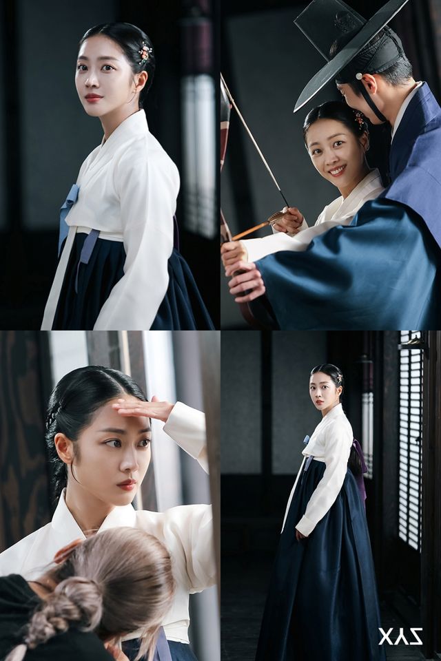 공개된 ‘탄금’ 비하인드 사진에서 조보아는 시간을 조선시대로 되돌린 듯 흰 저고리와 검푸른 치마를 곱게 차려입고 정결한 아름다움을 뽐내고 있는 동시에 애틋한 눈빛과 함께 은은한 미소를 띠며 보는 이들을 설레게 만들고 있다. 또한, 홍랑 역의 이재욱에게 등을 기대고 촬영을 준비하며 환한 웃음을 짓고 있는 모습은 두 사람의 자연스러운 케미스트리는 물론 화기애애한 현장 분위기를 느낄 수 있게 한다.