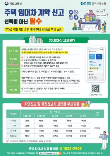 신고를 하지 않으면 2만 원에서 최대 30만 원의 과태료가 부과되며, 허위 신고 시에는 최대 100만 원까지 과태료가 부과된다. 계도기간 중 체결된 계약은 과태료 부과 대상에서 제외되며, 6월 1일 이후 체결된 계약부터 적용된다.
