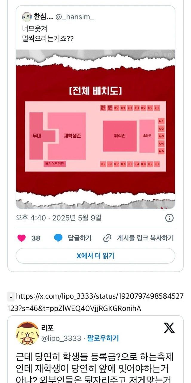 대학축제 좌석 배치 때문에 난리난 트위터