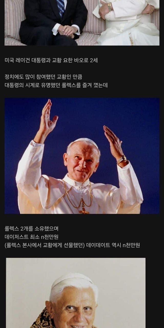 [스압] 지난 50년간 교황들이 차던 손목 시계들,,