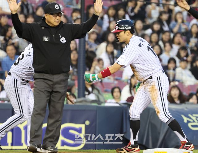 그런데 4회가 문제였다. 로젠버그는 이번에도 선두 타자인 박해민에게 안타를 맞고 주자를 쌓았다. 후속 문성주에게 삼진을 잡아낸 그는 오스틴 딘에게도 유격수 앞 땅볼을 유도했다. 순항이 이어져야 정상이었는데, 유격수 어준서가 공을 한 번에 포구하지 못했다. 어준서는 급하게 1루로 던져 타자 주자를 잡으려 했으나 송구가 짧게 날아가면서 1루수 앞에서 바운드 후 뒤로 빠졌다.