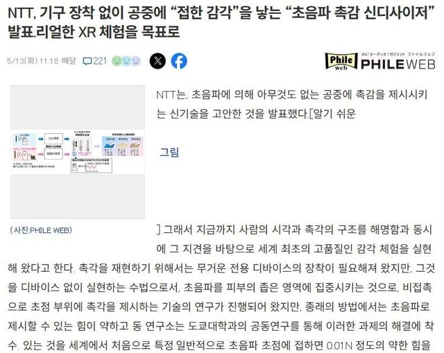 초음파를 이용해서손에 감촉을 느끼게 하는 기술이 도쿄대학에서 만들어짐