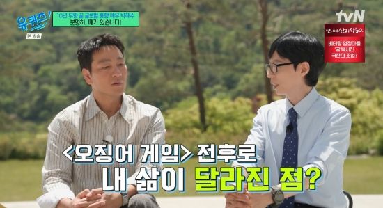 14일 방송된 tvN '유 퀴즈 온 더 블럭'(이하 '유퀴즈')에서는 박해수가 드라마 '오징어 게임'을 언급한 장면이 전파를 탔다.