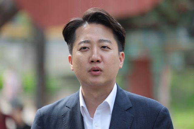 개혁신당 이준석 대선 후보가 14일 부산 금정구 범어사 안양암 방문을 마친 뒤 취재진 질문에 답하고 있다.(사진=연합뉴스)