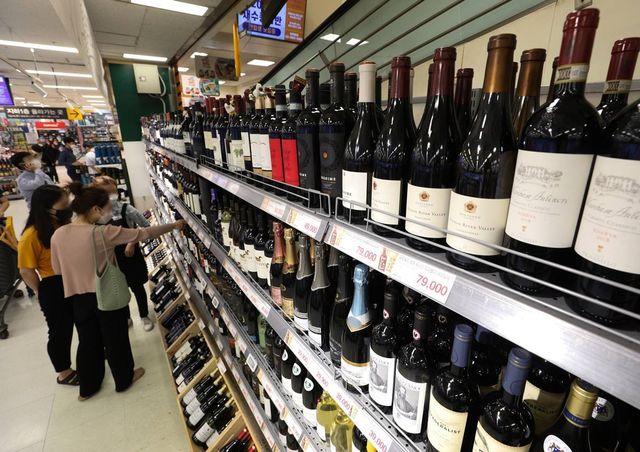 서울 이마트 용산점에서 시민들이 와인을 살펴보고 있다 / 뉴스1