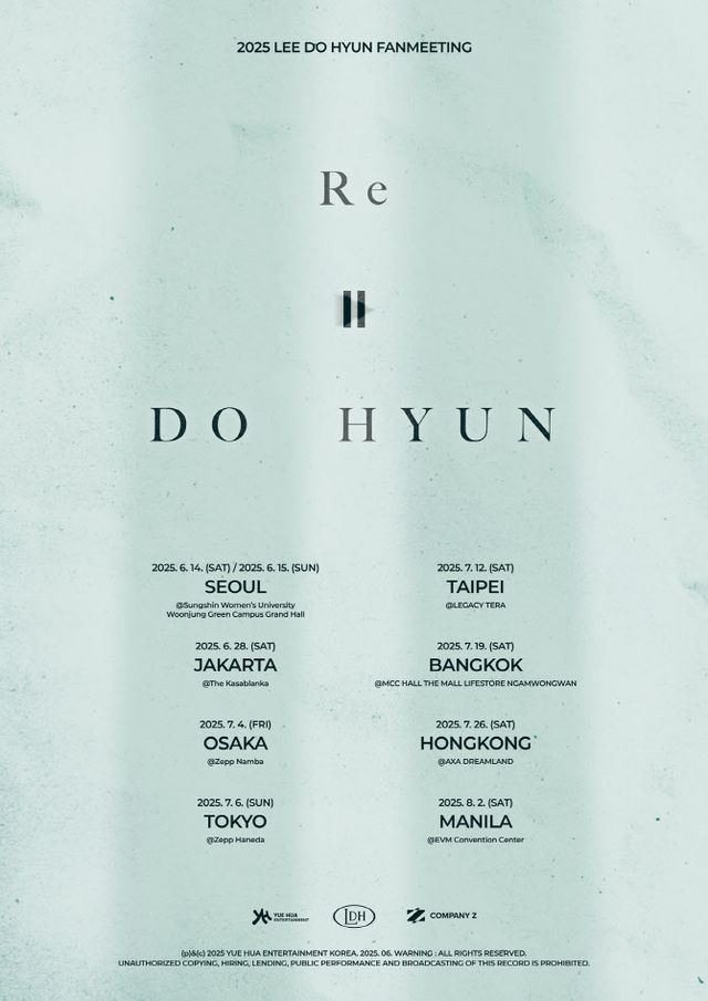 소속사 위에화엔터테인먼트코리아는 지난 14일 이도현 공식 SNS를 통해 ‘2025 LEE DO HYUN FANMEETING [Re DO HYUN]’(이하 ‘Re DO HYUN’)의 포스터를 게재하며, 아시아 팬미팅 투어 개최 소식을 알렸다.