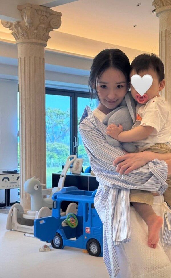아들의 얼굴은 공개되지 않았으나, 앙증맞은 모습이 훈훈함을 안겼다. 두 사람 뒤로 손연재 아들의 장난감도 보였다.