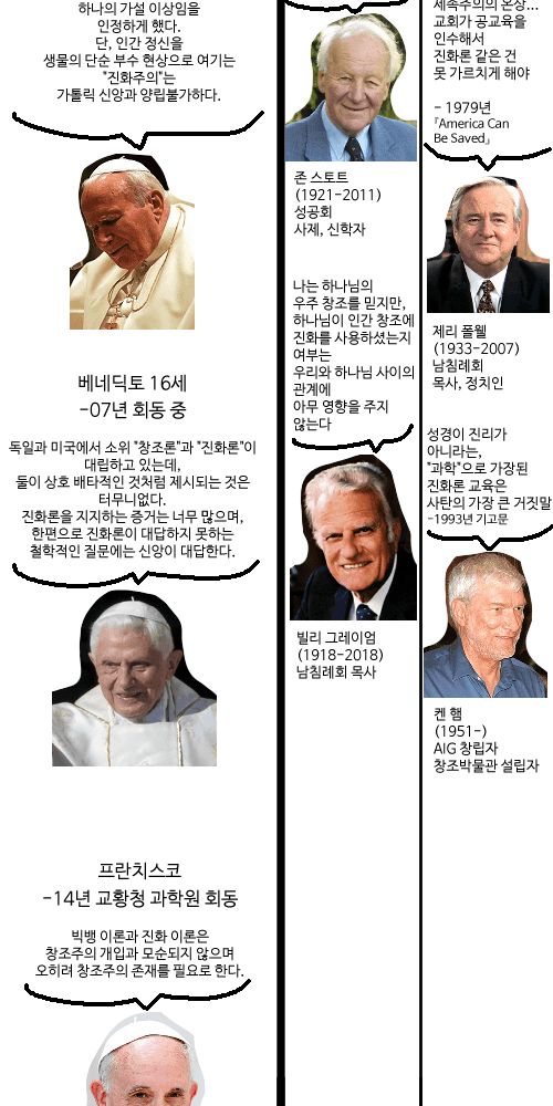 번외로 동방 정교회 (러시아, 그리스)는 그냥 진화론에 신경을 안 쓴다고함