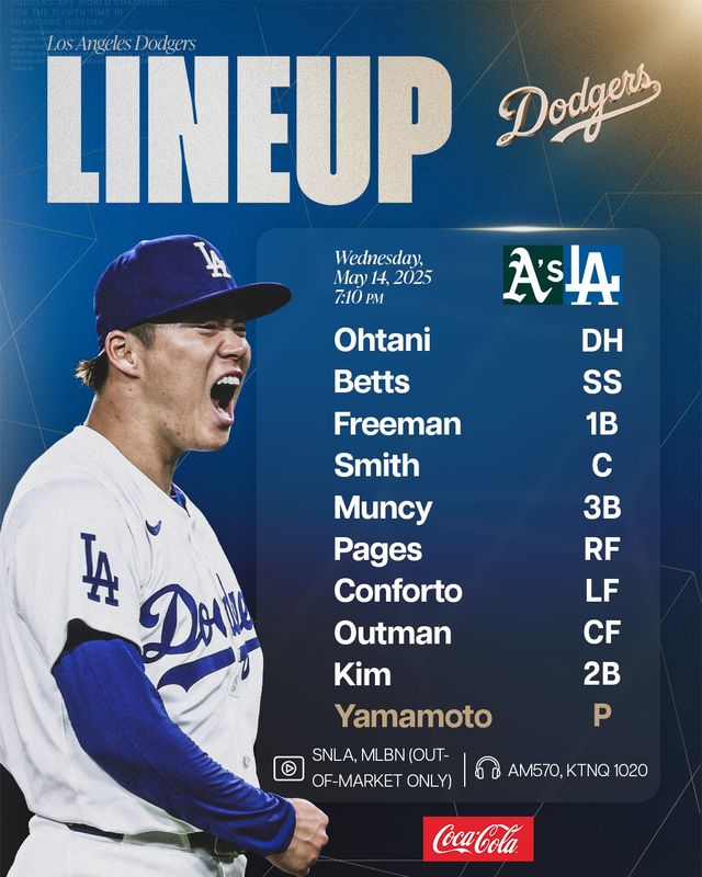 다저스는 15일(한국시간) 미국 캘리포니아주 로스앤젤레스 다저스타디움에서 2025 메이저리그 오클랜드 애슬레틱스와 홈경기를 치른다.