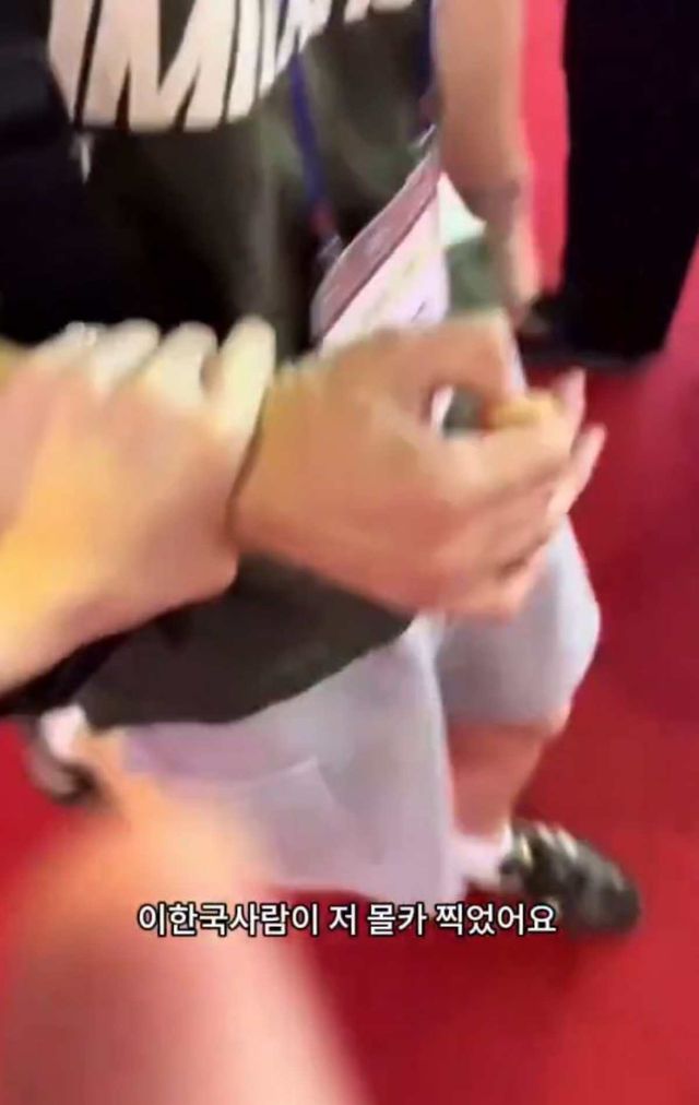 중국 여성을 몰래 촬영한 부산 한 고등학생을 보안 요원에게 끌고가는 모습 / X 캡처