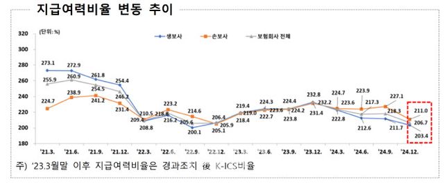 금감원 관계자는 “보험사는 양질의 자본을 충분히 확보하고 효과적으로 리스크를 관리해 중장기적 지급여력을 강화해야 한다”며 “취약 보험사를 중심으로 감독을 강화하겠다”고 전했다.