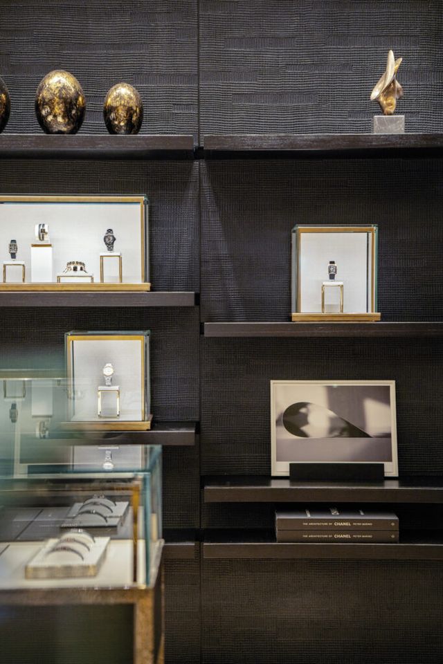 샤넬의 탁월한 장인정신과 무한한 창의성을 경험할 수 있는 보석 같은 공간. 코코 크러쉬(Coco Crush), N°5, J12 등과 같은 아이코닉 컬렉션부터 무슈 드 샤넬(Monsieur de CHANEL)과 마드모아젤 프리베(Mademoiselle Privé) 컬렉션 같은 오뜨 워치 메이킹 걸작, 그리고 꼬메뜨(Comète), 리옹 (Lion), 플륌(Plume) 등의 시그니처 하이 주얼리까지. 피터 레인(Peter Lane)의 유약을 입힌 세라믹 벽 조각과 로베르 구센(Robert Goossens)의 샹들리에 아래에서 하이엔드 워치 & 화인 주얼리의 정수를 느낄 수 있다.