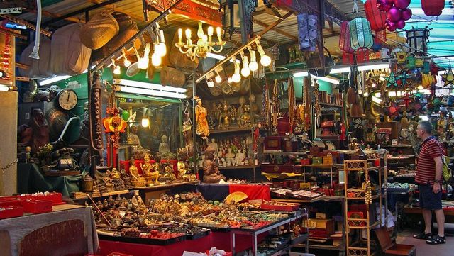 이곳에는 30개 이상의 상점과 노점이 자리 잡고 있다. 청나라 도자기, 옥 조각품, 옛날 엽서, 자개함 등이 있다. 다만 진품과 복제품이 혼재돼 있어 구매 시 주의가 필요하다.