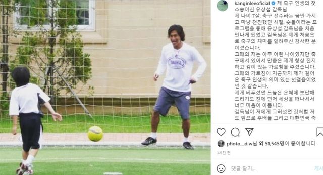 유상철 전 감독은 선수 생활을 마친 2006년부터 방송 예능 프로그램 ‘날아라 슛돌이’에 출연해 어린이들에게 축구를 가르친 바 있다. 이강인은 2007년 이 프로그램에 합류해 유 감독의 지도를 받았다. ‘슛돌이’ 시절 빼어난 기량으로 관심을 받은 이강인은 2011년 스페인 발렌시아 유소년팀에 입단해 성장을 이어갔고, 이제는 유럽 무대에서 좋은 활약을 보여주고 있다.