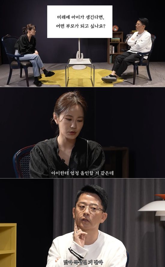 해당 영상에서 김준호와 김지민은 서로의 속마음을 확인해보는 시간을 가졌다. '미래에 아이가 생긴다면 어떤 부모가 되고 싶냐'는 질문을 받은 두 사람은 질문을 보자마자 깊은 한숨을 내쉬며 고민에 빠졌다.