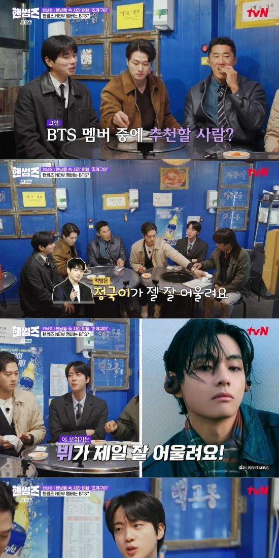 15일 방송된 tvN '핸썸가이즈'(이하 '핸썸즈')에서는 진이 게스트로 출연한 가운데 오상욱이 정국과 뷔에게 영상편지를 보낸 장면이 전파를 탔다.