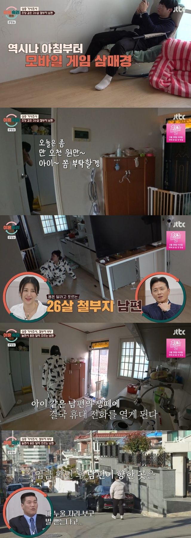 아내는 "아이 아빠가 일을 아무것도 안 하고 있다. 최근에만 세 번째 직장을 옮기고 있다. 일을 몇 주 다니다 그만두고 다른 게 간다"며 남편이 한 달도 못 채우고 일을 그만둔다고 불만을 토로했다. 실제로 남편이 결혼 후 일한 기간은 고작 5~6개월뿐이었다.
