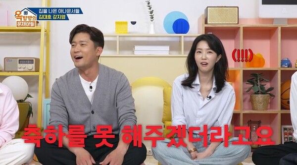 김대호는 "(강지영) 퇴사 소식을 기사 보고서 알았다"며 "'시기적으로 이르지 않나' 이런 생각이 좀 들었다. 그래서 진심으로 축하를 못 해주겠더라"고 해명했다