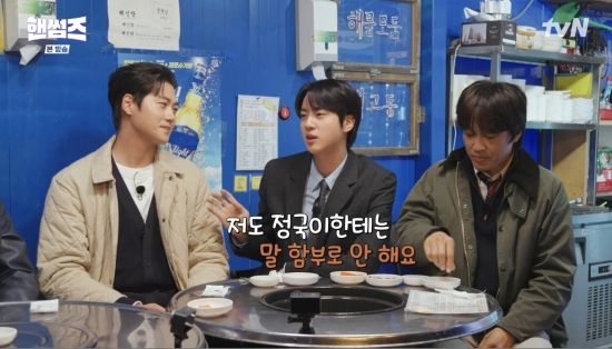이이경은 "너네 멤버 중에 이 프로그램이랑 잘 어울릴 멤버 있냐. 생각날 친구"라며 물었다. 진은 "지금 이 롤이면 정국이가 제일 잘 어울린다. 진짜 잘 먹는다. 그리고 이 분위기에는 뷔가 제일 잘 어울린다. 서로 헐뜯고 막말해도 타격을 입지 않는 친구"라며 정국과 뷔를 추천했다.