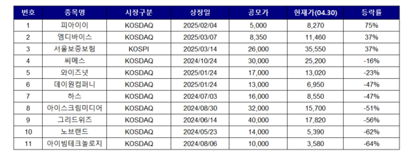 16일 금융투자업계에 따르면 삼성증권은 최근 1년간(2024년 5월 1일~2025년 4월 30일) 총 11건의 IPO를 주관했다. 아이빔테크놀로지·노브랜드·그리드위즈·아이스크림미디어 등 중소형주의 상장을 주로 맡았다.
