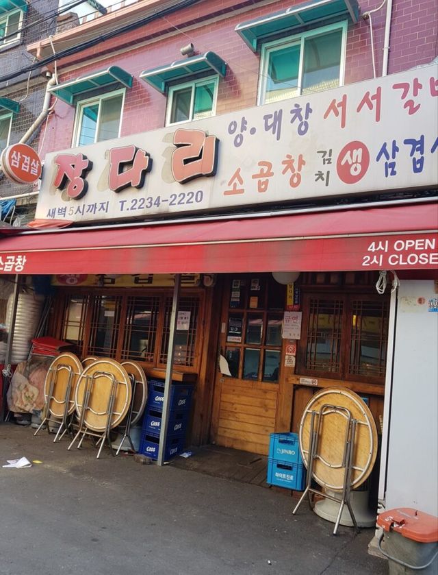 약수역 5번 출구 앞, 고소한 기름 냄새를 맡고 홀린 듯이 향하게 되는 곳이 장다리입니다. 이곳은 한우 소 곱창 맛집으로 유명한데요. 무려 30년이 넘은 역사를 보유하고 있습니다. 곱창을 먹을 때 옷에 냄새가 밸까 걱정이라면 이곳은 야외 자리도 있어 편안하게 즐길 수 있습니다. 곱창을 다 먹고 난 뒤에는 K 디저트인 볶음밥도 즐겨 보세요.